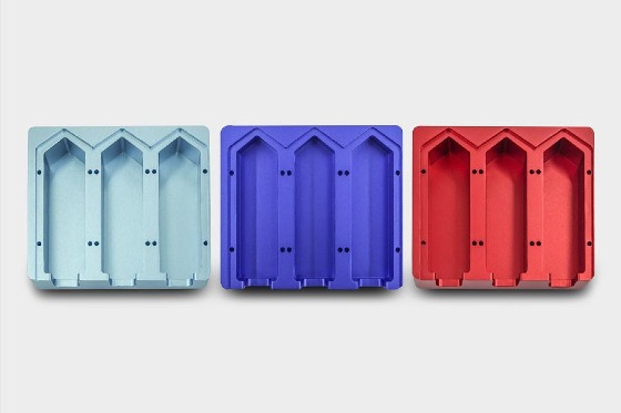 Anodized: Type II creates a corrosion-resistant finish. Parts can be anodized in different colors—clear, black, red, and blue are most common—and is usually associated with low silicone element series of aluminum. Type III is thicker and creates a wear-resistant layer in addition to the corrosion resistance seen with Type II.